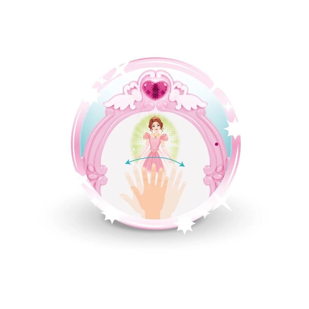 * Üründe müzikli ve sensörlü ayna mevcuttur. Çocuğun; kalp şekilli sensörün önünde elini geçirmesi ile ayna aktif hale gelir ve içerisindeki farklı farklı görsellerdeki prensesler aynada belirmeye başlar.