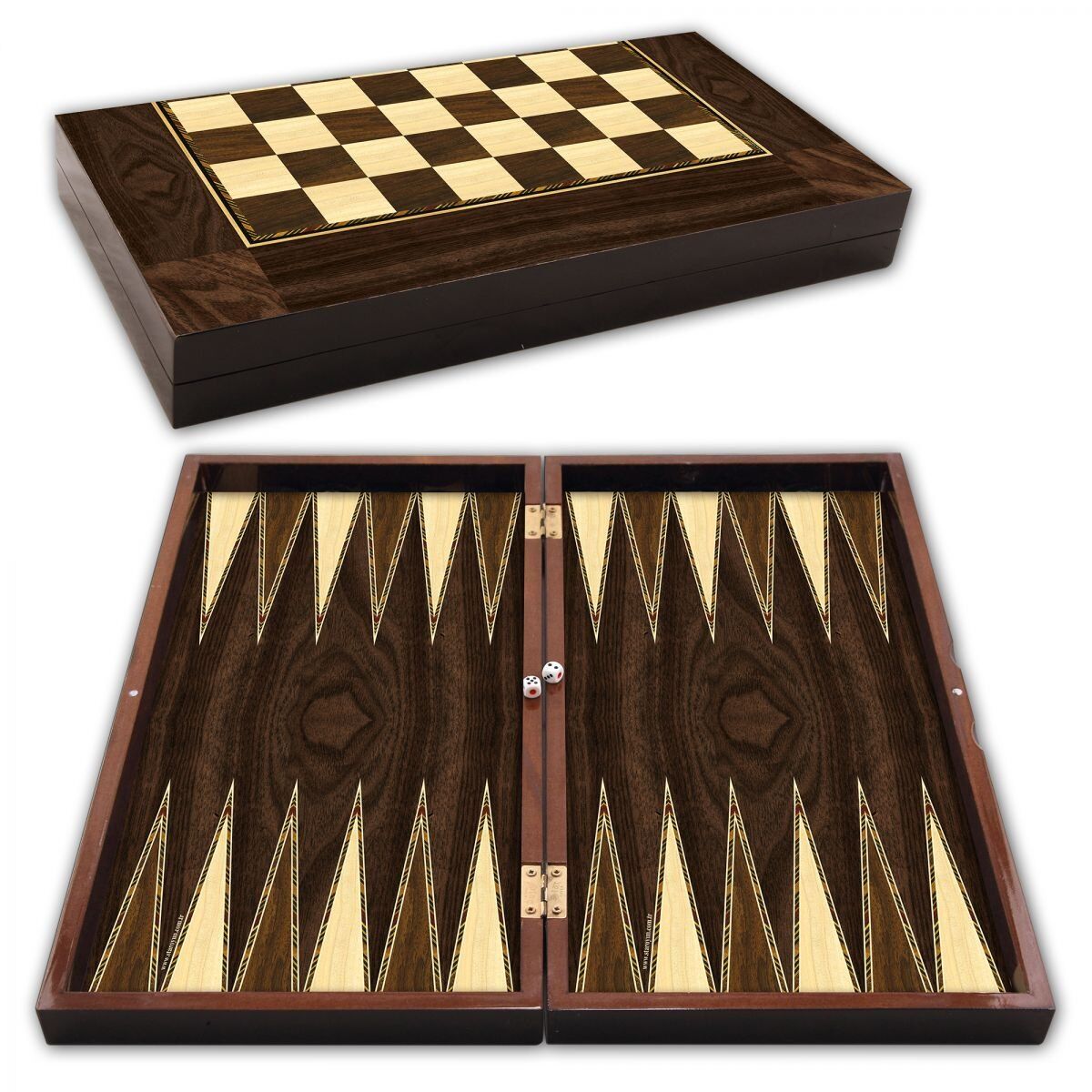 12 MM MDF kasa - komple boyalı ve 2 kat vernik cilalı , Cila altında özel coexselefon kaplama sayesinde çizilmez ve yıpranmaz zemin Mıknatıslı kapama mekanizması ,36 MM akrilik krem – siyah renklerde tavla pulları , 9 MM plastik zarlar. Ofset baskılı Mikro Ondula karton ürün kutusu , içerisinde naylon muhafazalı