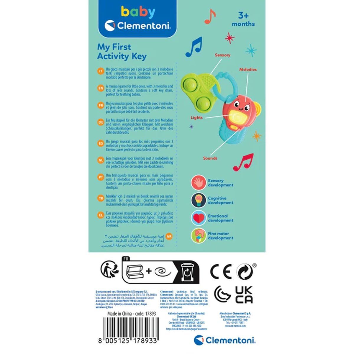 Yumuşak malzemeden yapılmış anahtarlık, çocuğun ince motor becerilerini ve duyusal dokunma duyusunu geliştirir. Baby Clementoni serisindeki tüm taklit oyuncakları keşfedin.