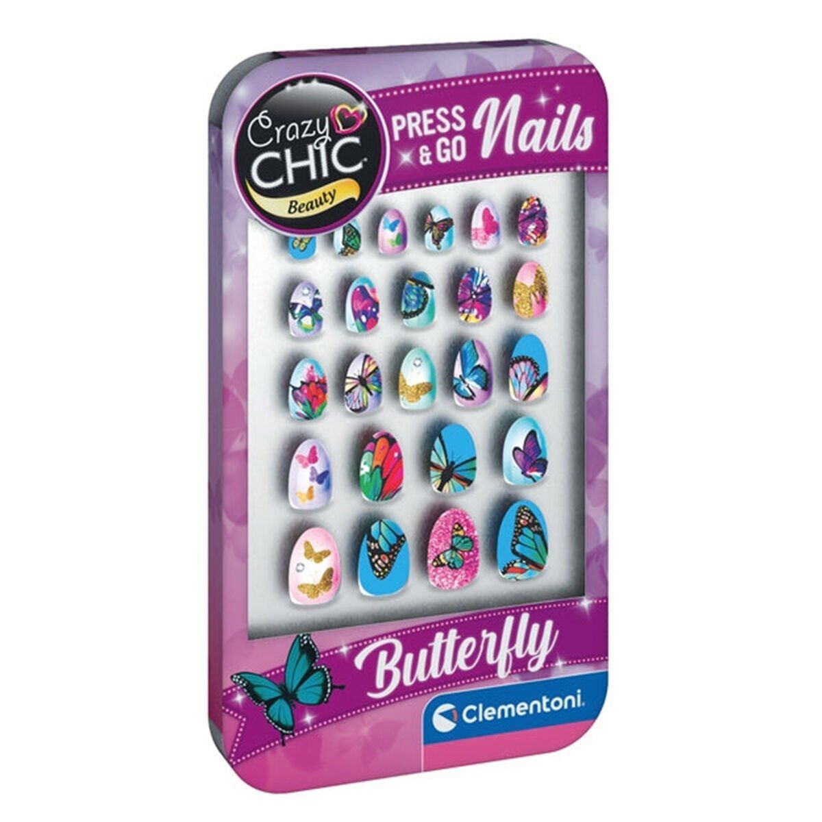 Sette "kelebek" temalı farklı boyutlarda 24 tırnak bulunur Küçük kızların güzellik dünyasında yaratıcılıklarını geliştirmelerine yardımcı olan oyun seti Makyaj malzemeleri test edilmiştir ve güvenlidir, alerjik ve toksik değildir; böylece küçük kızlar tamamen güvenli bir şekilde oynayabilir