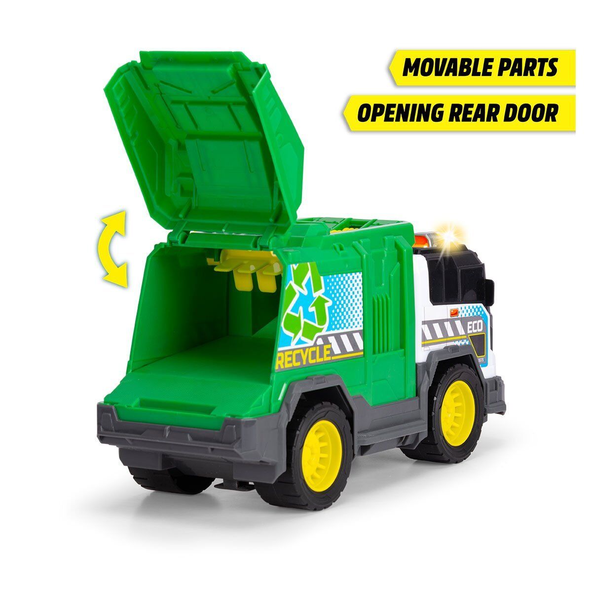Bagaj kapağı açıldığında, içindekiler otomatik olarak 30 cm'lik oyuncak arabadan dışarı kayar, böylece çöp kamyonu bir sonraki tura hızla hazır olur!
