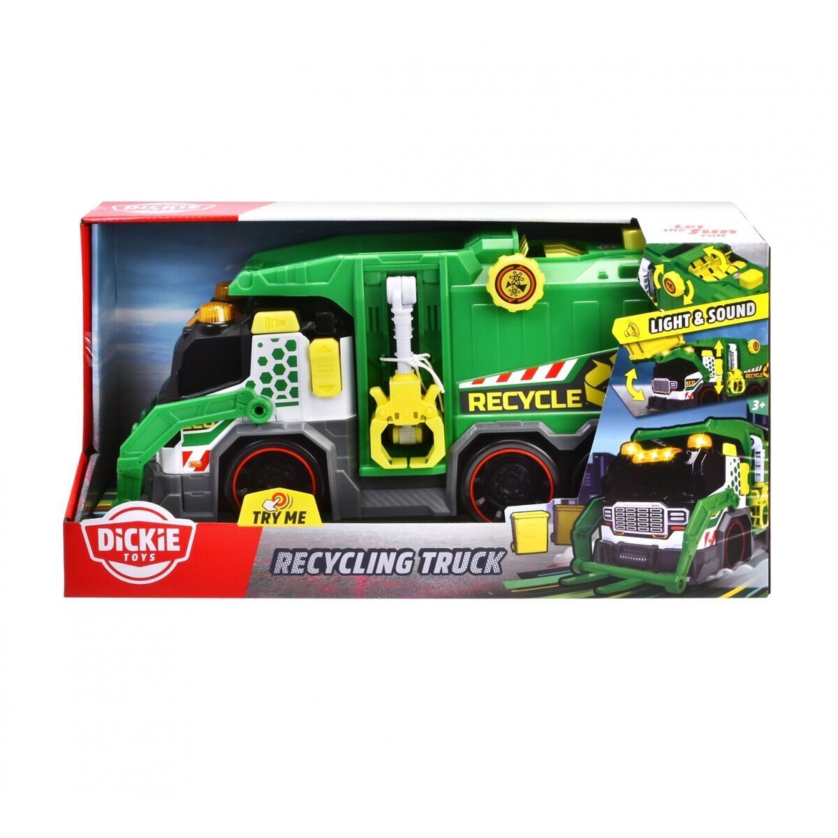 3 yaş ve üzeri çocuklar için tamamen işlevsel oyuncak geri dönüşüm kamyonu 3 yaş ve üzeri çocuklar için tasarlanan Dickie Toys'un bu oyuncak geri dönüşüm kamyonu (39x14x18,5 cm), küçük çocuğunuza geri dönüşümün önemini öğretmek için mükemmel bir oyuncaktır.