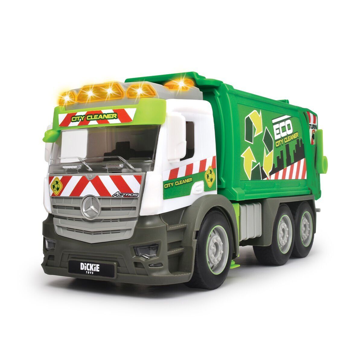 Ayrıca, itildiğinde aracı birkaç metre ileri iten yerleşik bir sürtünme motoruna sahiptir. Bu serideki diğer iki aracı, Dickie Toys Recycling (203745015) ve Dickie Toys Recovery Truck'ı (203745016) incelemeyi unutmayın. Işık ve ses efektleri Çöp aracı, diğer yol kullanıcılarını uyarmak için gerçekçi ses efektlerine ve turuncu bir uyarı ışığına sahiptir.
