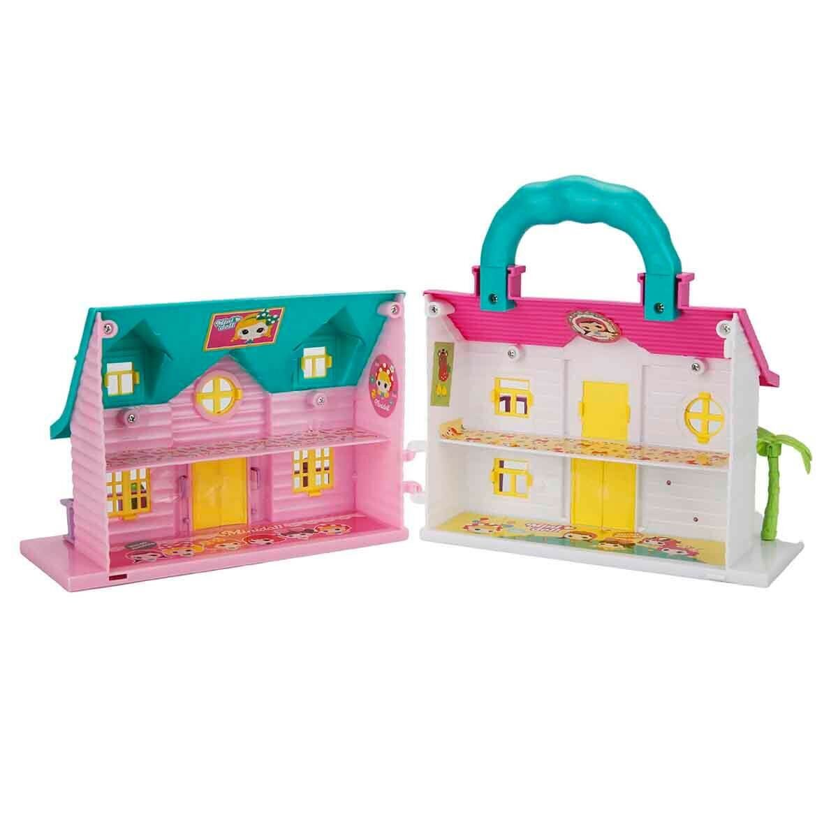 Set içerisinde; 2 katlı pembe ev, 2 katlı yeşil ev, 1 adet insan figürü ve çeşitli mobilyalar olmak üzere 14 parçadan oluşmaktadır.
