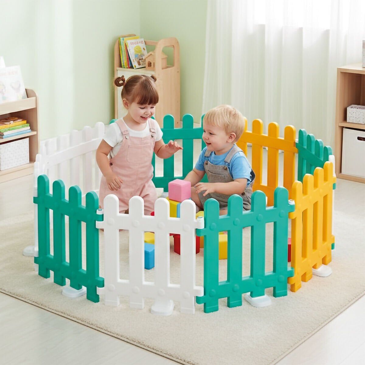 Renkli ve modüler yapıya sahip çocuk oyun çiti, bebeğiniz için güvenli bir oyun alanı oluşturur. Yuvarlatılmış kenarları, dayanıklı malzemesi ve kolay kurulumu sayesinde hem ev içi hem de bahçe kullanımına uygundur.Çocuğunuz özgürce oynarken siz de gönül rahatlığı yaşarsınız.