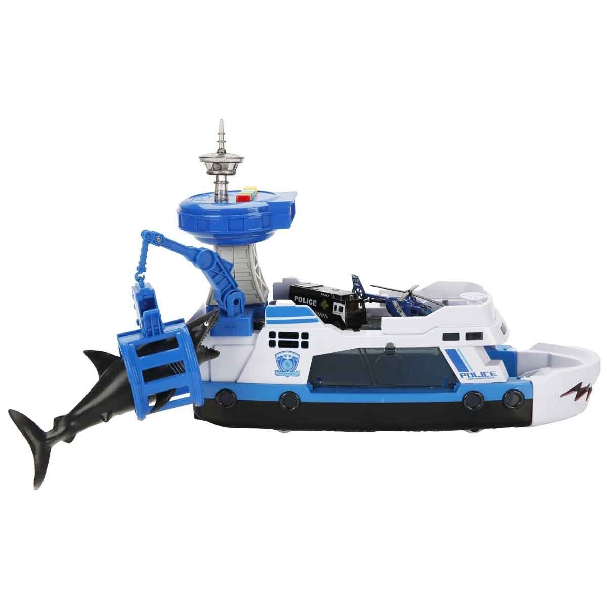 Helikopter sana havadan destek sağlarken, köpekbalığı dişlerine benzer çarpıcı bir detaya sahip bota binen araba ise her türlü yardım için hazırdır. Maxx Wheels Sesli ve Işıklı Sahil Güvenlik Oyun Seti ile görev tamamlandı. Deniz artık güvende!