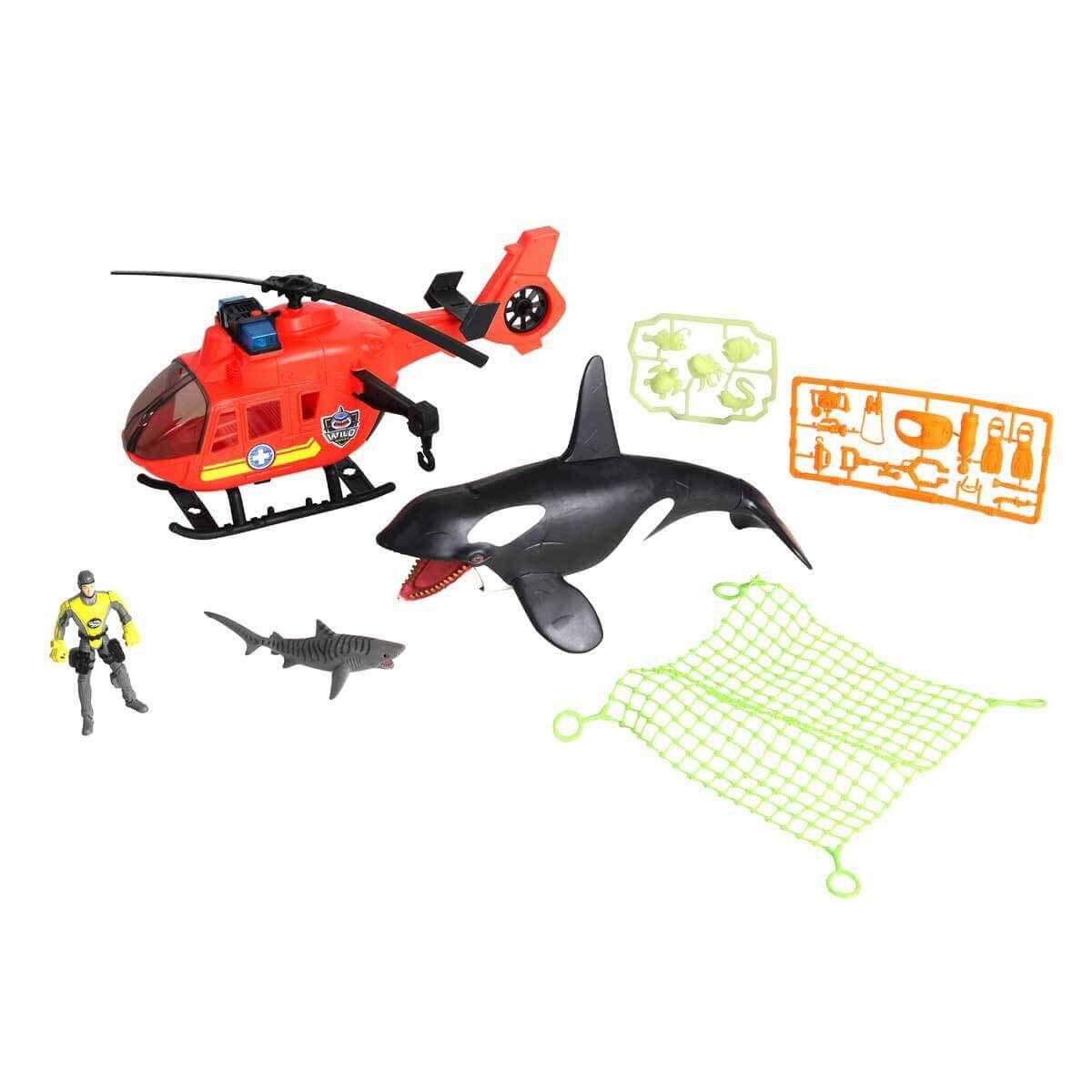 Kutu içerisinde; 1 adet sesli ve ışıklı helikopter, 1 adet balina, 1 adet dalgıç ve çeşitli denizaltı aksesuarları yer almaktadır.