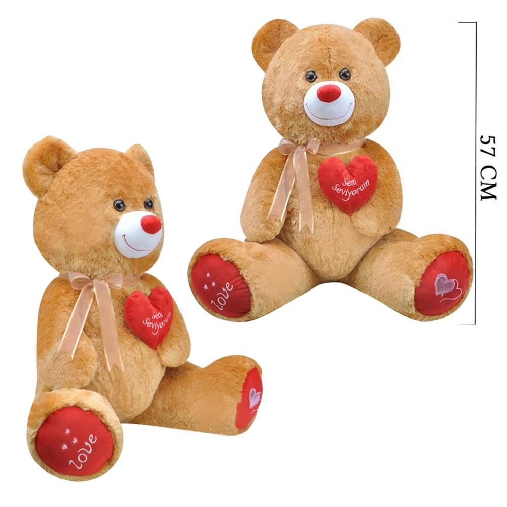 57 Cm Kahverengi Oturan Sevimli Kapli Peluş Ayıcık
