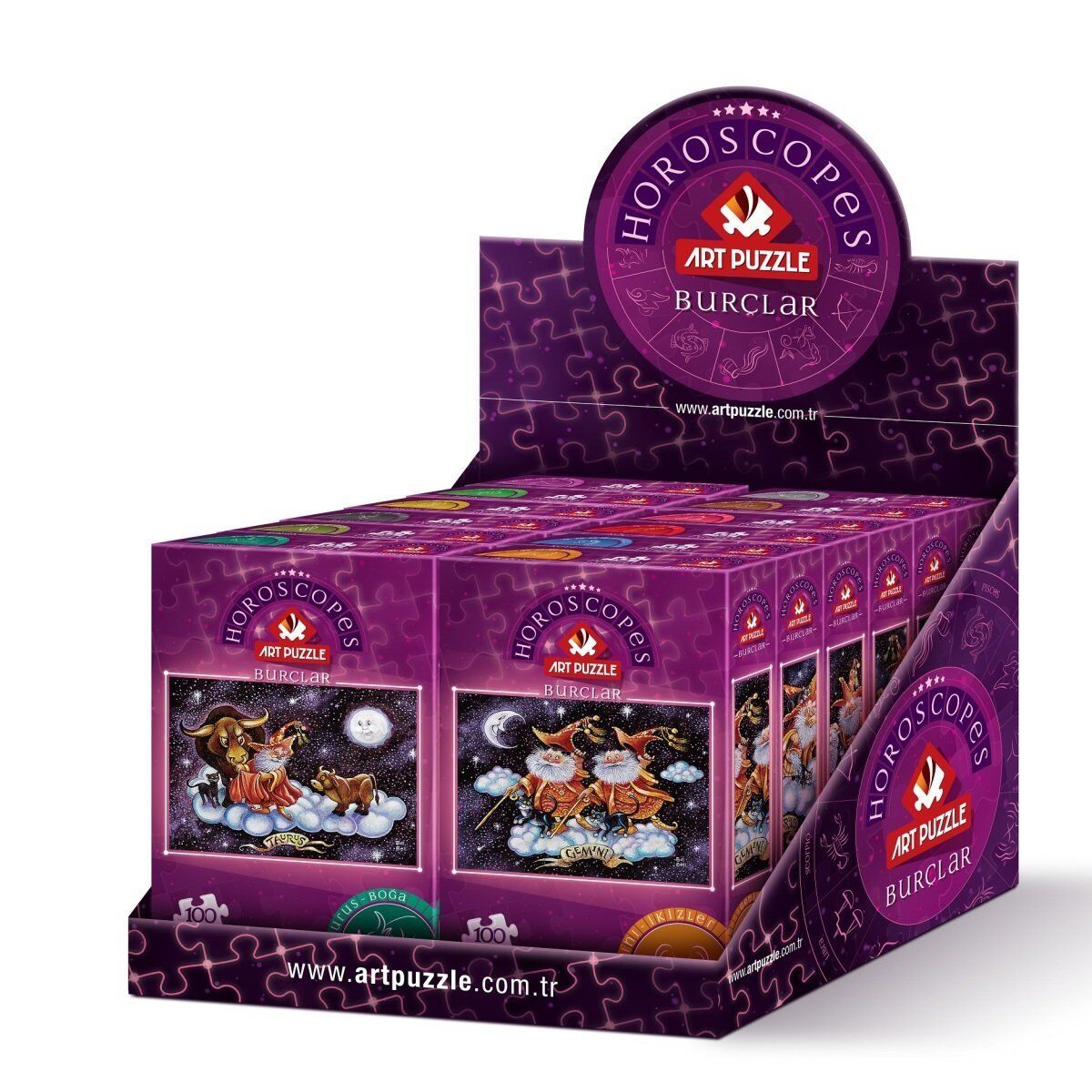 - Açıklama : Art Puzzle 100 parça burç puzzle monoblok bıçaklarla kesim yapılmaktadır. Her parça farklı kesime sahiptir. Hiçbir parça bir başka yere oturmaz.2 mm mavi kartona baskı yapılarak el değmeden üretim yapılmaktadır.