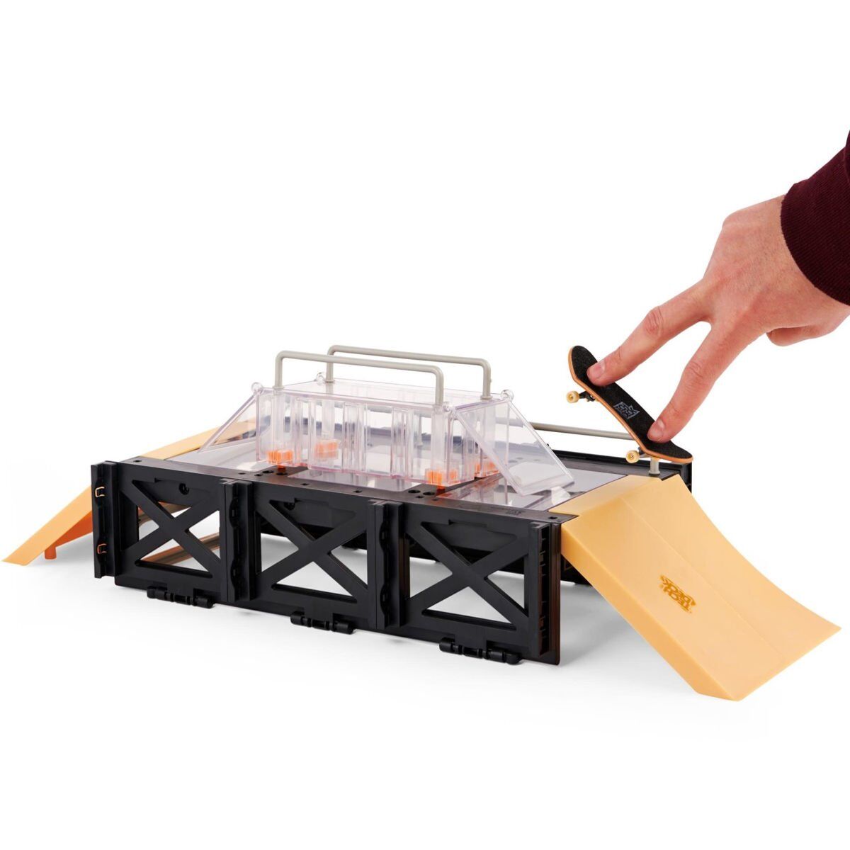 OYNAYIN VE SERGİLEYİN: Yarı saydam kutunun üzerinden atlayın ve tüm rayları aşın. Tech Deck kaykay parkı olarak oynayın ve parmak tahtası koleksiyonunuzu sergileyin (ek parmak tahtaları ayrı satılır).
