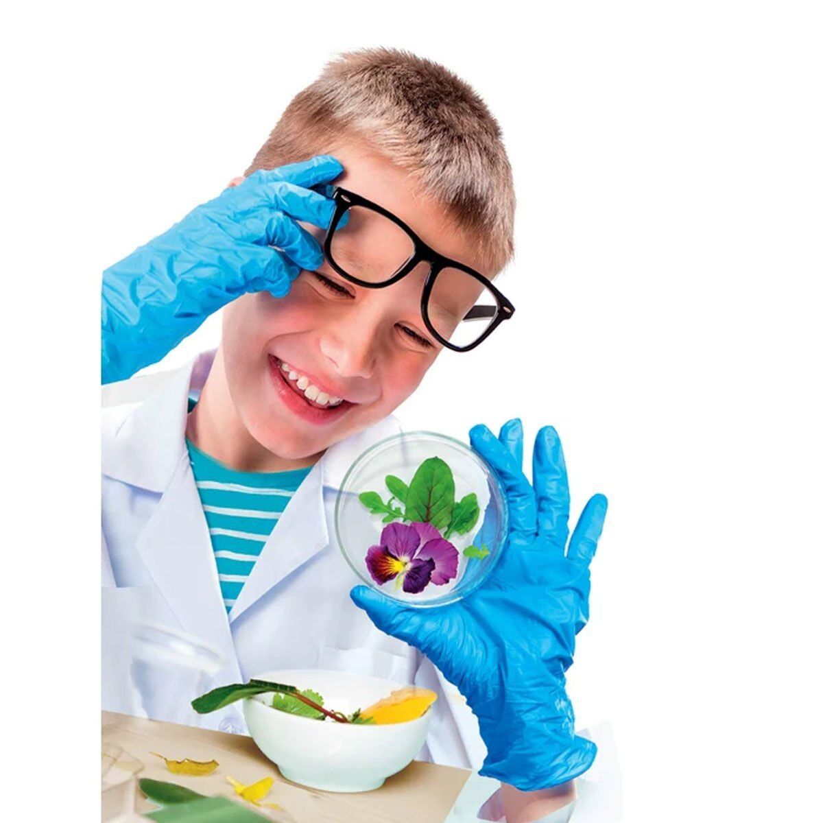 Çevremizdeki dünyayı gözlemlemek için zengin bir enstrümantasyon sağlanmıştır: plastik slaytlar, gözlükler, pipetler ve büyüteç.