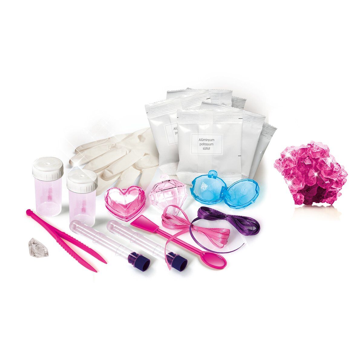 - Bilim Seti: Kristal Takılar ile ışıltılı kristaller oluşturarak kendi takılarınızı tasarlayın!