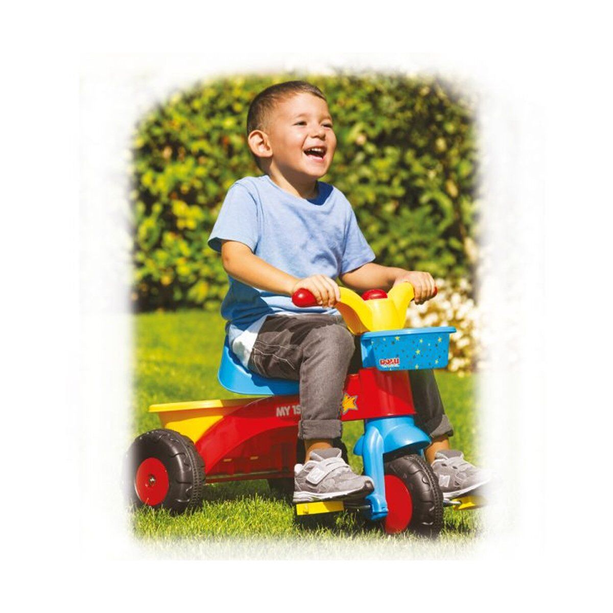 24 AY VE ÜZERİ ÇOCUKLAR İÇİN UYGUNDUR. 48 X 45 X 65 CM. ÖLÇÜLERİNDEDİR. İLK BİSİKLETİMİN ÖN VE ARKASINDA SEPETLERİ BULUNMAKTADIR. PVC TORBALIDIR. KARIŞIK RENKLİDİR. KORNASI VARDIR.