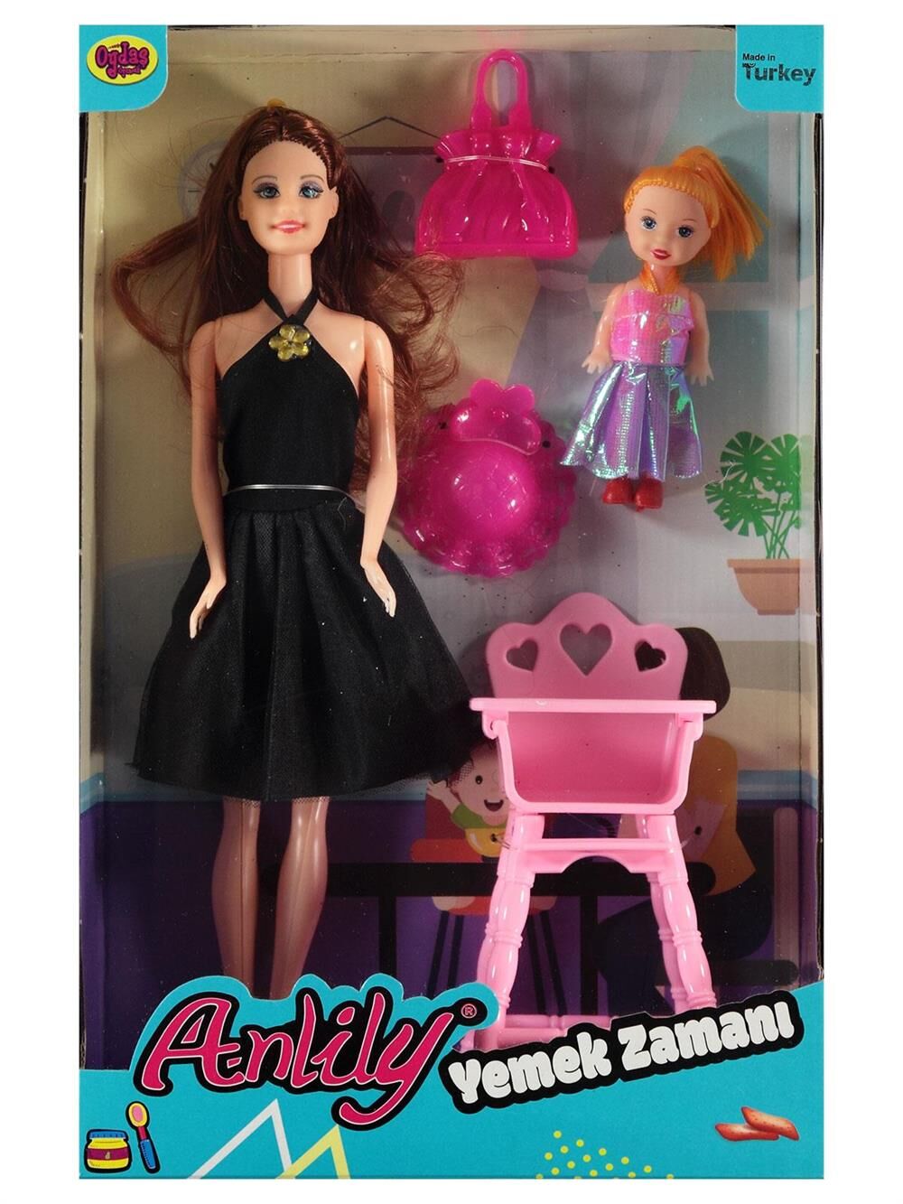 Anlily bebek bebeği ve mama sandalyesi Çanta ve Şapkasıyla Güzel Eğlenceli Bir Oyun Seti