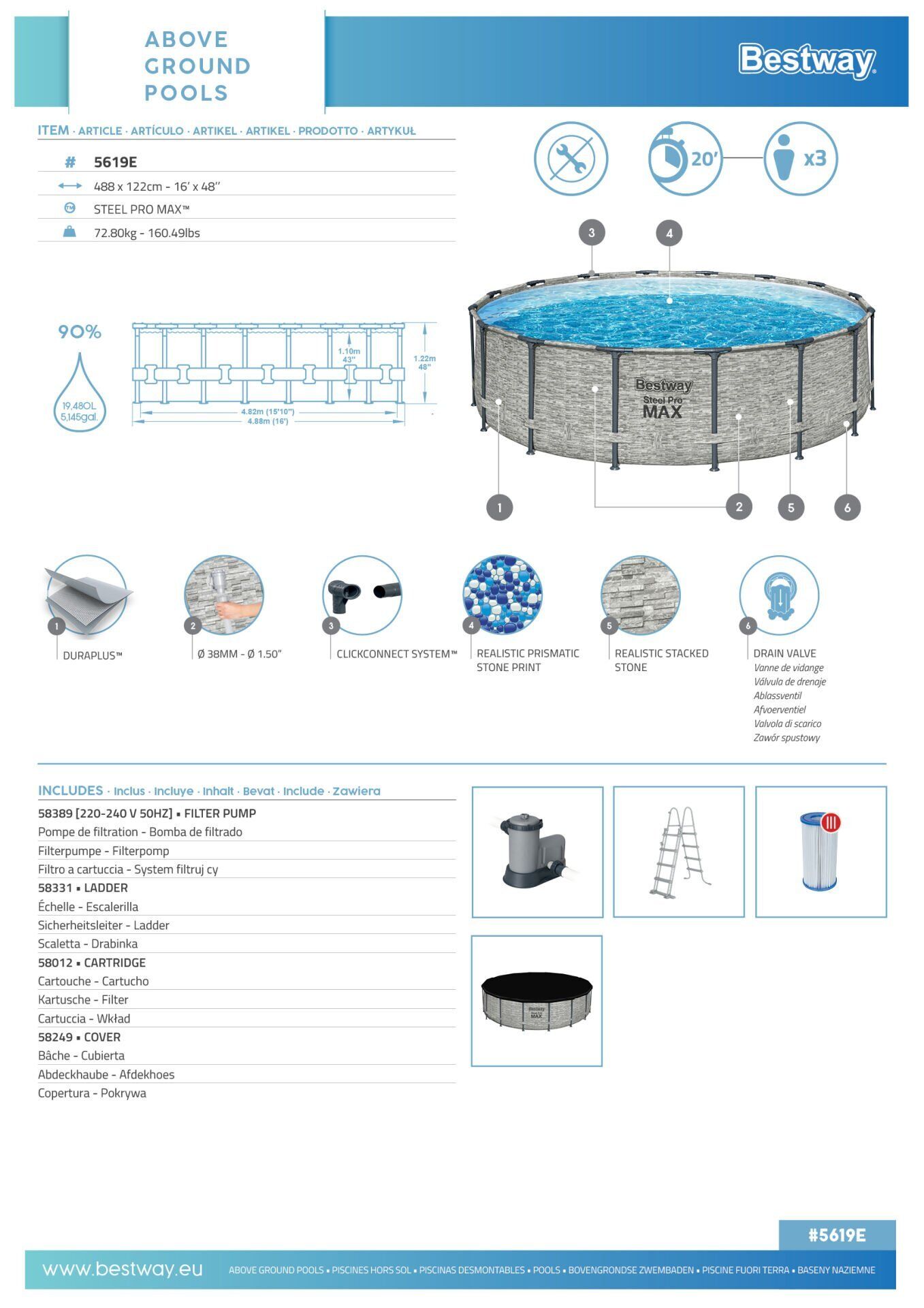 Bestway® 5619E Steel Pro MAX™ Prefabrik Yer Üstü Çember Havuz Seti 4,88 m x 1,22 m