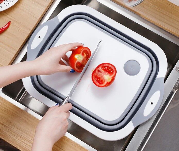 Kesme tahtası, sebze yıkama drenaj sepeti olarak kullanılabilir.
