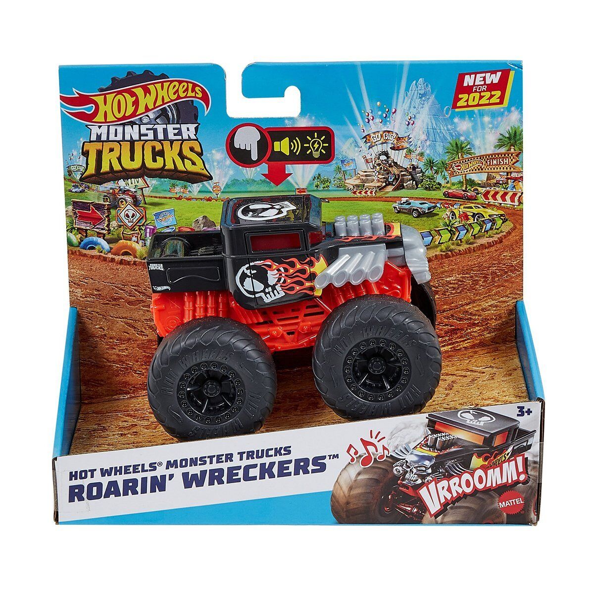 Hot Wheels Monster Trucks Kükreyen Arabalar koleksiyonundaki araçlar, heyecan dolu çarpma ve çarpışma aksiyonlarını, ışık ve ses sürprizleriyle zenginleştirilmiş olarak sunuyor.