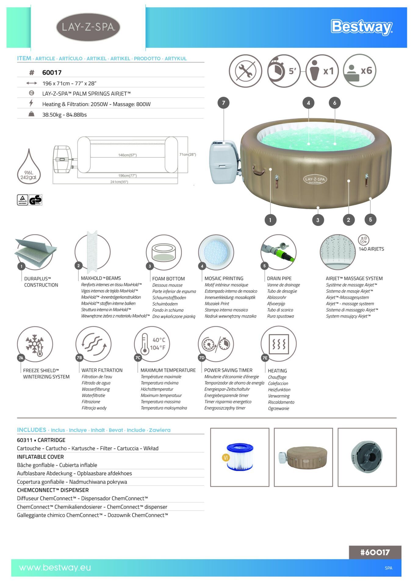 Lay-Z-Spa® 60017 Palm Springs AirJet™ Şişme Spa Havuzu, 4-6 kişilik