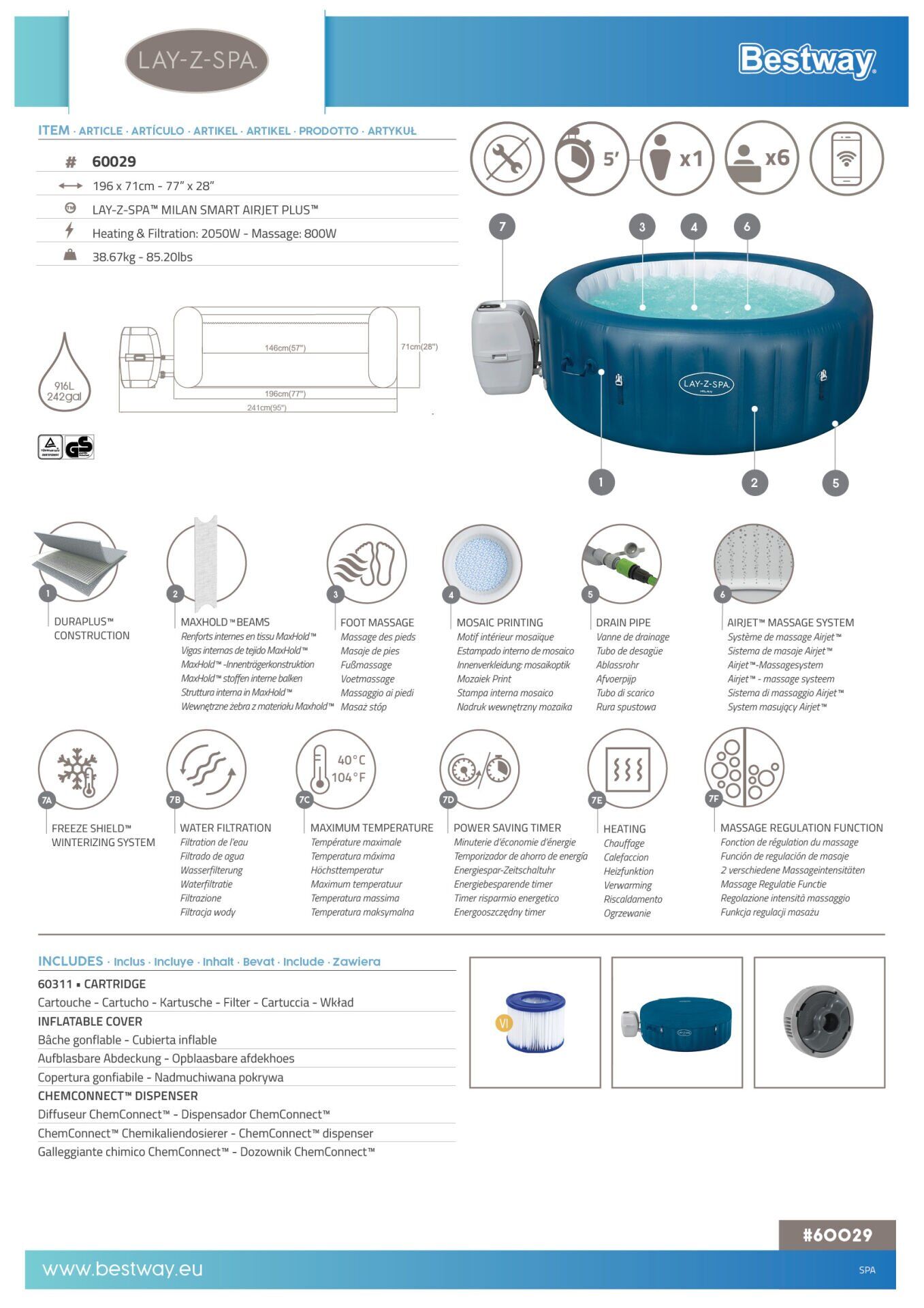 Lay-Z-Spa® 60029 Milan Smart AirJet Plus™ Şişme Spa Havuzu, Mobil Uygulama Kontrollü, 4-6 kişilik