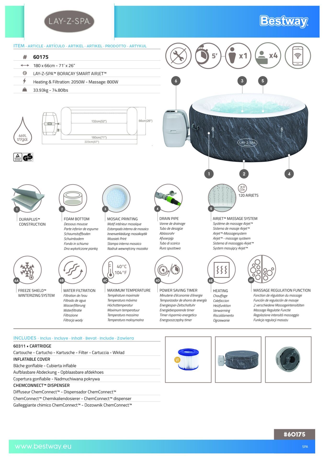 Lay-Z-Spa® 60175 Boracay Smart Signature AirJet™ Şişme Spa Havuzu, Mobil Uygulama Kontrollü, 2-4 kişilik