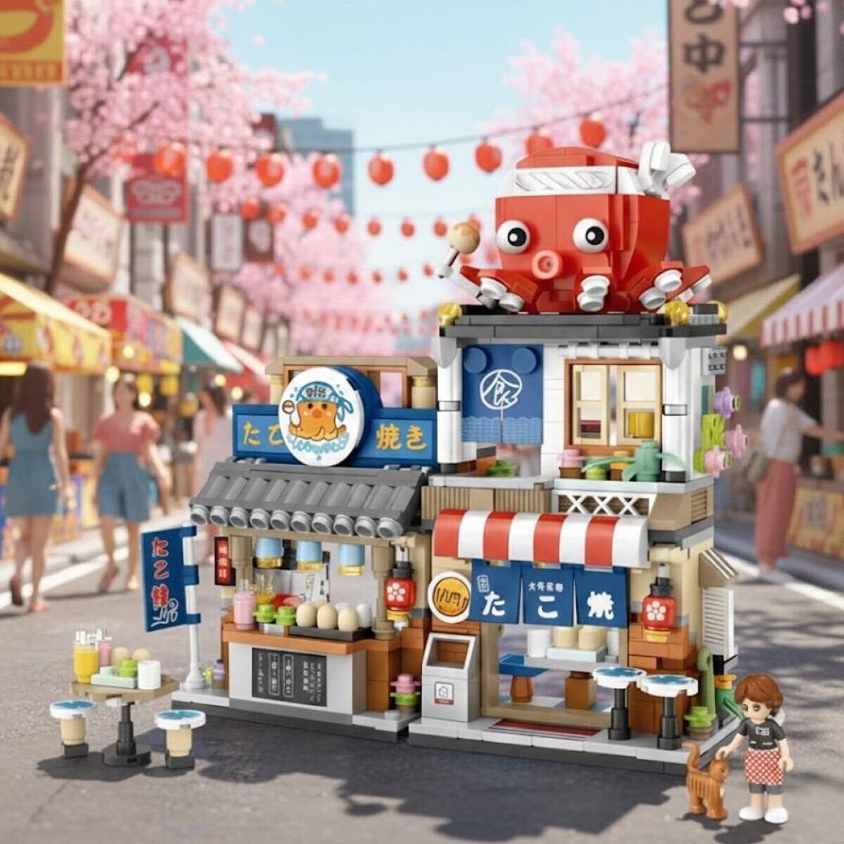 LOZ Japon Katlanır Yemek Sokağı 722 Parça Block Oyuncak – Dekoratif Mini Yapı Seti