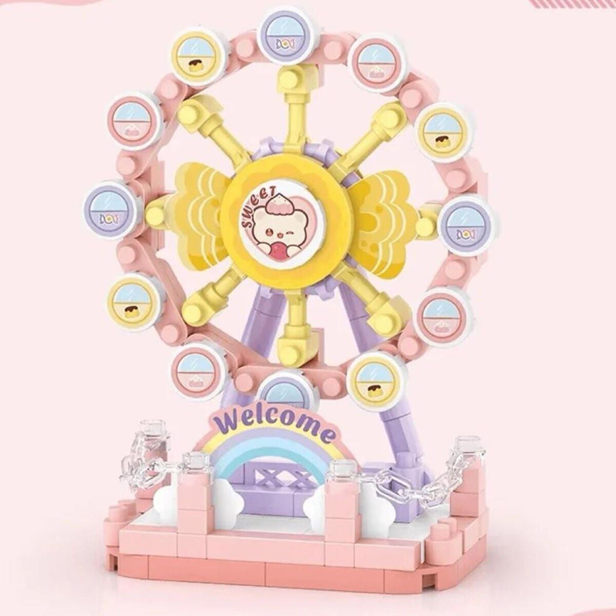 Dönme Dolap Mini Block Oyuncak, eğlence parklarından ilham alan sevimli tasarımıyla kısa sürede tamamlanabilen keyifli bir yapı setidir.