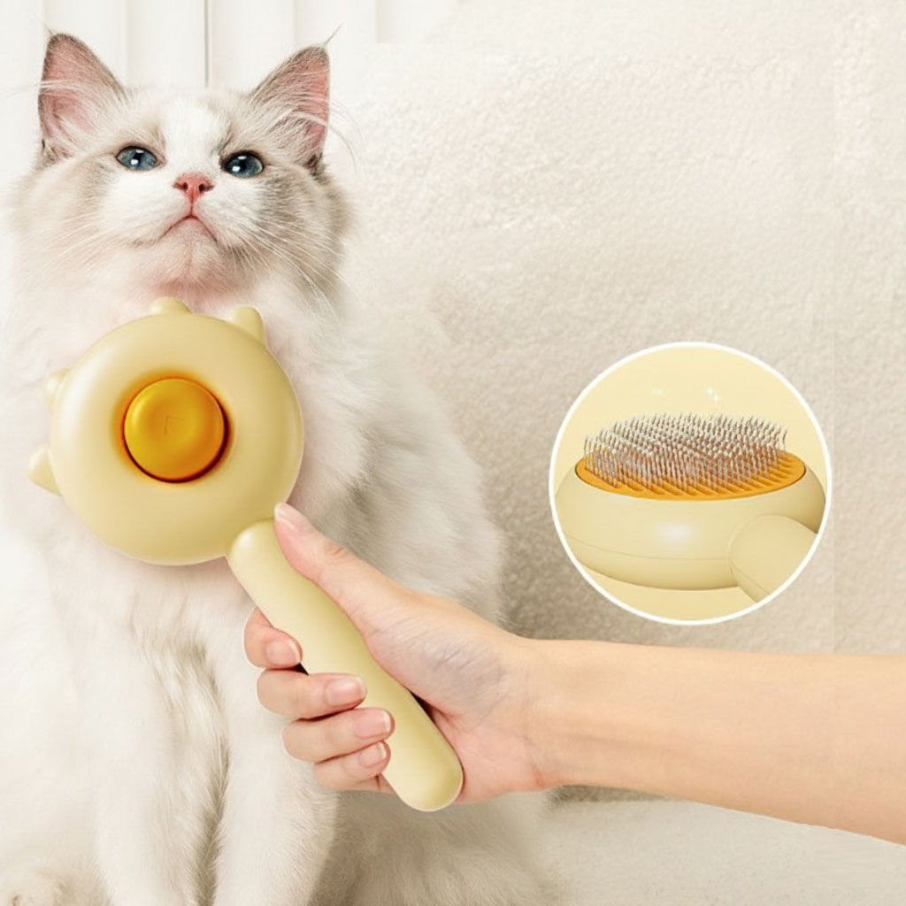 Tek Tuşla Kolay Temizlik: Tarağın arkasındaki düğmeye bastığınızda, toplanan tüyler saniyeler içinde yüzeye itilir ve tek hamlede temizlenir.