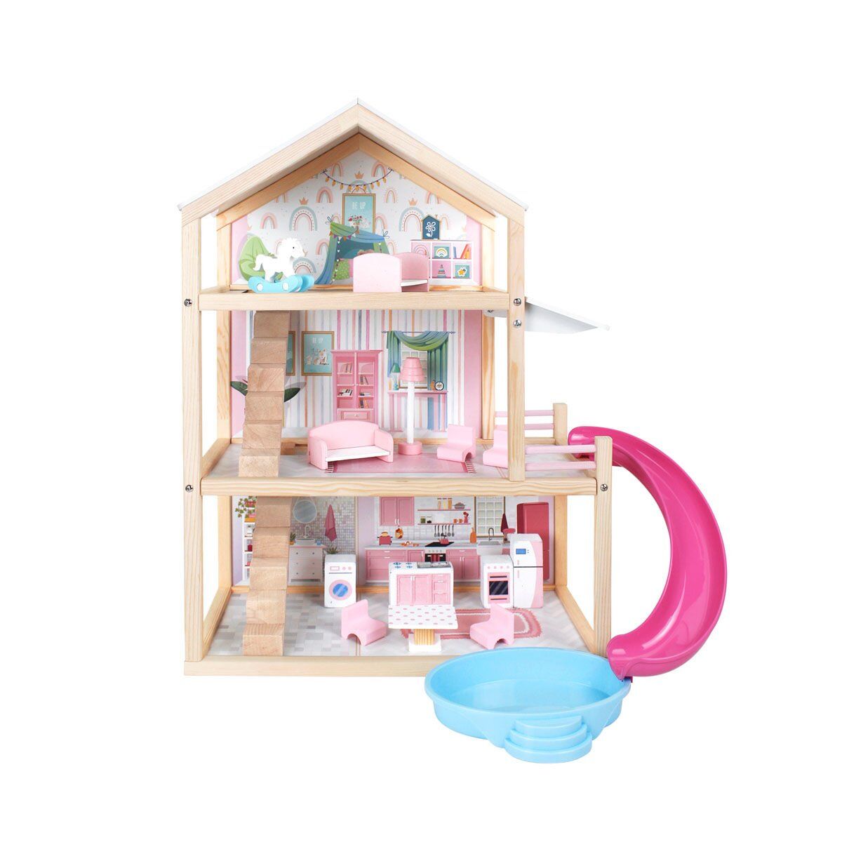 Kaydırak ve havuz detayı:Kaydırak ve havuz detayı, çocuklarınızın evlerindeki oyuncak bebekler ile daha eğlenceli vakit geçirmesini sağlar.